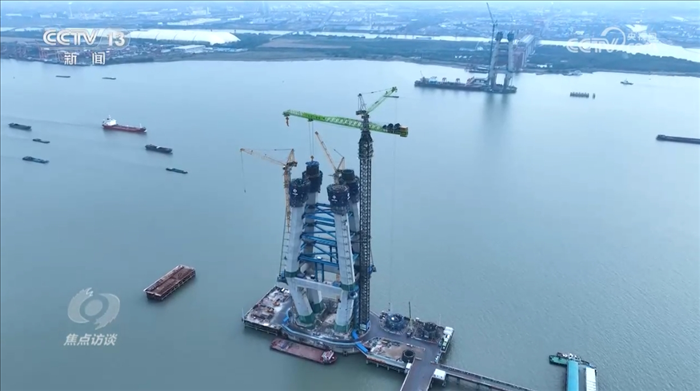 央視網(wǎng)消息(焦點(diǎn)訪談):近些年來(lái),中國(guó)在多個(gè)領(lǐng)域創(chuàng)造了大量的世界之最。這一個(gè)個(gè)的 “世界首次”“世界第一”深刻地改變了中國(guó),也令世界驚嘆。從今天起《焦點(diǎn)訪談》欄目推出“登攀”系列節(jié)目,我們來(lái)看一看中國(guó)奇跡誕生背后的故事?!胺晟介_路、遇水架橋”,這是中國(guó)基建人的日常,他們不斷突破,創(chuàng)造了一個(gè)個(gè)登頂世界之最的基建名場(chǎng)面。今天我們要講的是一座修建當(dāng)中的長(zhǎng)江大橋——位于江蘇常州和泰州之間的常泰長(zhǎng)江大橋,作為世界上在建的最大跨度的公鐵兩用斜拉橋,這座大橋在建設(shè)的過(guò)程當(dāng)中遇到了很多困難,也頻頻上演著突破和創(chuàng)新。