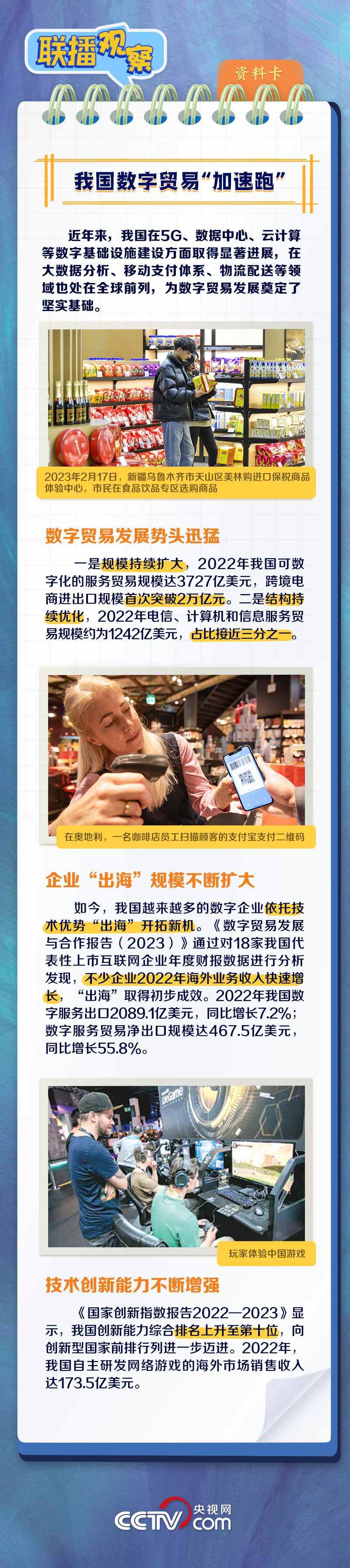 “當(dāng)前,全球數(shù)字貿(mào)易蓬勃發(fā)展,成為國(guó)際貿(mào)易的新亮點(diǎn)。”11月23日,習(xí)近平主席向第二屆全球數(shù)字貿(mào)易博覽會(huì)致賀信,回顧了近年來(lái)中國(guó)為全球數(shù)字貿(mào)易蓬勃發(fā)展付出的努力,并對(duì)與會(huì)各方寄予厚望。