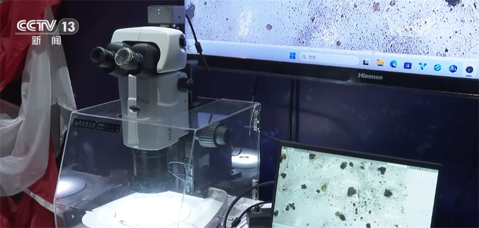 總臺記者 劉冰清:我身邊就是此次展覽的亮點之一,由嫦娥五號在2020年帶回來的月球土壤,這也是月壤首次在澳門亮相。通過顯微裝置近距離觀測月壤,可以讓澳門民眾感受到我國航天技術的偉大成就。