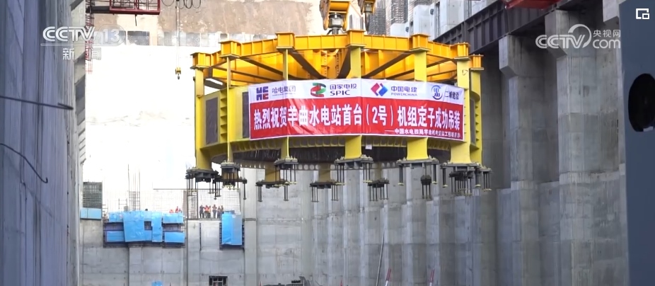 羊曲水電站首臺(tái)機(jī)組定子吊裝成功