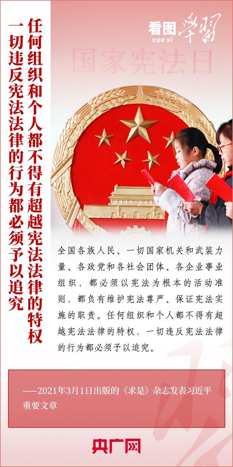 憲法是國家的根本法,是黨和人民意志的集中體現(xiàn)。尊崇憲法、學習憲法、遵守憲法、維護憲法、運用憲法,是每個公民的義務。在第十個國家憲法日(12月4日)來臨之際,《看圖學習》欄目為您梳理習近平總書記關于憲法的重要論述。一起來學習!