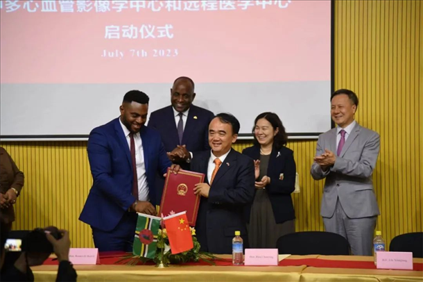 吳德熙半年可見(jiàn)的朋友圈里,唯一一條動(dòng)態(tài)發(fā)自多米尼克。那是2023年7月7日,中國(guó)-多米尼克心血管影像學(xué)中心和遠(yuǎn)程醫(yī)學(xué)中心成立的日子。為了這個(gè)了不起的時(shí)刻,時(shí)隔大半年,他再次跨過(guò)半個(gè)地球,登上這座小島。