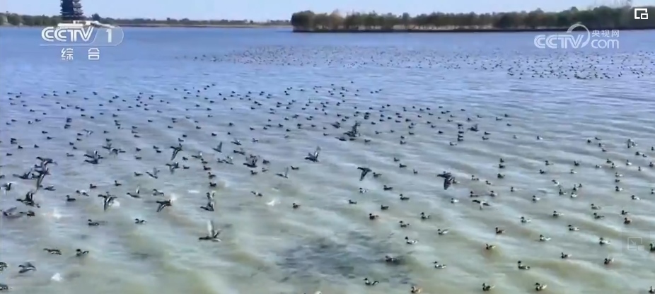 有著“鳥中大熊貓”之稱的東方白鸛瀕危鳥類2023年有500多只飛到了這里。近年,當?shù)赝ㄟ^退漁還湖、電力設(shè)施入地等環(huán)境修復(fù)美化工程,生態(tài)質(zhì)量大幅提升。