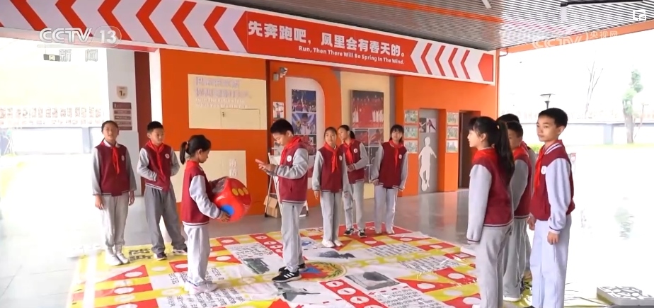山東濰坊市坊子區(qū)實(shí)驗(yàn)學(xué)校利用戶外空地,開(kāi)發(fā)了一系列益智類和傳統(tǒng)民間游戲等地面游戲。湖南長(zhǎng)沙的清水塘江灣小學(xué),學(xué)校通過(guò)在每個(gè)教室門口設(shè)置摸高“打卡”點(diǎn)、走道鋪裝“跳房子”九宮格等方法,創(chuàng)造出很多隨處可玩的場(chǎng)所。