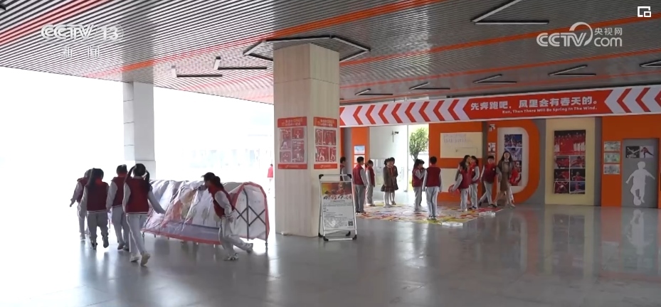 采訪時(shí)雖是下雨天,但記者看到大多數(shù)學(xué)生并沒(méi)有“宅”在教室里。學(xué)校還鼓勵(lì)學(xué)生們自創(chuàng)游戲,用紙足球來(lái)一場(chǎng)“迷你”足球賽、用廢紙團(tuán)來(lái)一場(chǎng)“迷你”保齡球賽,更有學(xué)生用竹節(jié)制作出了課文中的“竹節(jié)人”,玩起了對(duì)抗賽。