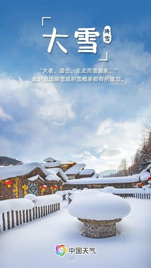 大雪節(jié)氣期間,由于氣溫進一步下降,降雪或積雪的概率都有所增加。小雪節(jié)氣,雪隨下隨融,而到了大雪節(jié)氣,雪隨下隨積,能“坐住了”。此時,新疆北部、西北地區(qū)東部、東北等地要警惕強風雪天氣的出現(xiàn)。