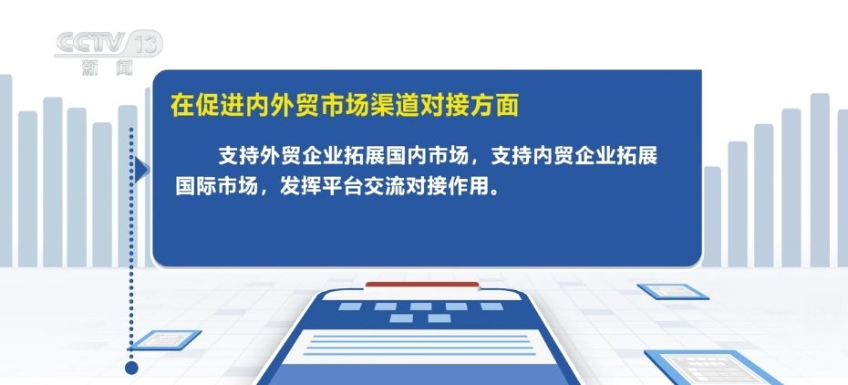 在促進(jìn)內(nèi)外貿(mào)市場渠道對接方面,支持外貿(mào)企業(yè)拓展國內(nèi)市場,支持內(nèi)貿(mào)企業(yè)拓展國際市場,發(fā)揮平臺交流對接作用。