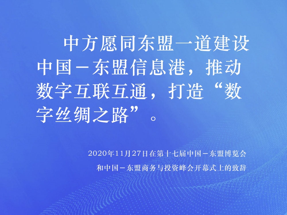 2014年,中國提出與東盟十國共建“中國-東盟信息港”倡議,得到了東盟各國的積極響應(yīng)。在第十七屆中國-東盟博覽會(huì)和中國-東盟商務(wù)與投資峰會(huì)開幕式上,習(xí)近平總書記提出“提升科技創(chuàng)新,深化數(shù)字經(jīng)濟(jì)合作”的重要倡議,表示中方愿同東盟各國攜手合作,抓住新一輪科技革命和產(chǎn)業(yè)變革機(jī)遇,發(fā)揮互補(bǔ)優(yōu)勢(shì),聚焦合作共贏。