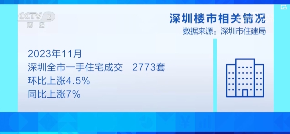 深圳市住建局?jǐn)?shù)據(jù)顯示,11月份,深圳全市一手住宅成交2773套,環(huán)比漲4.5%、同比漲7%。