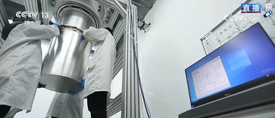 完成復(fù)雜的運算僅靠主板是不夠的。量子芯片相當(dāng)于傳統(tǒng)計算機的CPU,也就是“大腦”,但是想讓芯片正常工作,所需要的環(huán)境是非??量痰?。在現(xiàn)場,工作人員正在調(diào)試的就是給這塊芯片提供理想工作環(huán)境的低溫低噪運行裝置,芯片就是在這個白色圓桶狀主體內(nèi)工作,圓筒里會形成接近“絕對零度”,也就是約在零下273.15℃的環(huán)境,并且還要與外界屏蔽隔離。除了低溫、低噪之外,這套系統(tǒng)上還安裝了很多減震設(shè)備,也是最大程度避免外界環(huán)境影響到芯片的運行。