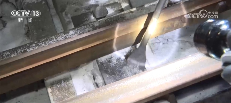 我在車站里看到不僅有給列車編組的司機、調度員,我還看到在鐵路的道岔還有很多工作人員正在做一些積雪清掃還有除冰的工作。我們可以湊近看一下,可以看到道岔這里現在是被凍住了,已經沒法推動這個鐵軌,而這的空間又非常小,所以只能靠這樣的小鏟子一點點鏟,才能把這塊兒的積雪和冰給清干凈。