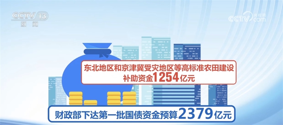 據(jù)介紹,根據(jù)工作機制確定的第一批2900多個項目,財政部已經(jīng)下達第一批國債資金預算2379億元,其中,災后恢復重建和提升防災減災能力補助資金1075億元、東北地區(qū)和京津冀受災地區(qū)等高標準農(nóng)田建設補助資金1254億元、重點自然災害綜合防治體系建設工程補助資金(氣象基礎設施項目建設)50億元。