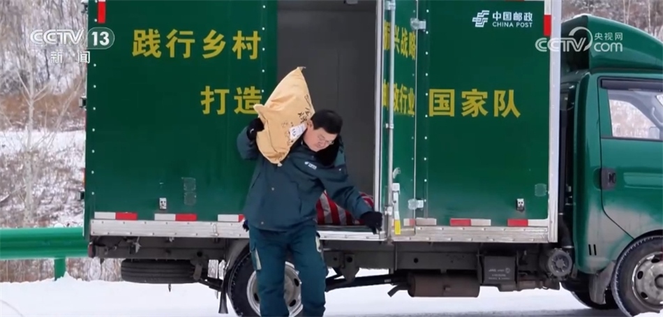吉林省臨江市葦沙河鎮(zhèn)四道河子村村民 馬先紅:這兩天大雪,大伙兒都以為不能來了,這(快遞包裹)送得特別到位,送到家門口。