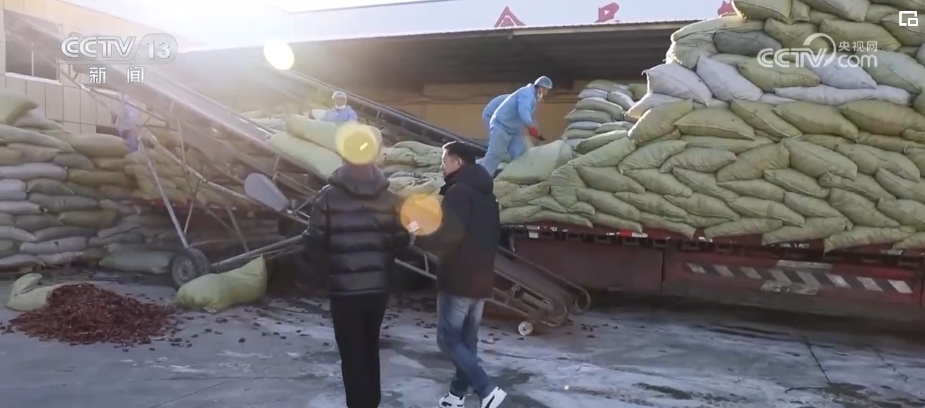 在楊安鎮(zhèn)這家加工香辛料的企業(yè),我們看到負(fù)責(zé)人蘇海濤正在卸載剛從越南新進(jìn)口來(lái)的黑胡椒。