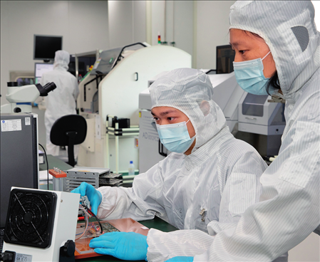 浙江清華柔性電子技術(shù)研究院柔性集成器件制造中試線(2022年6月攝)。 浙江清華長(zhǎng)三角研究院供圖