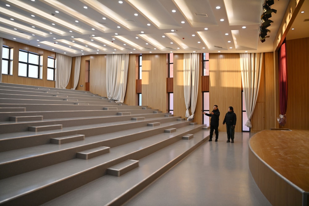 在天津市北辰區(qū)雙口鎮(zhèn)中河頭村,程相博(左一)及村干部正查看紅色教育中心建設(shè)情況。新華社記者 李然 攝