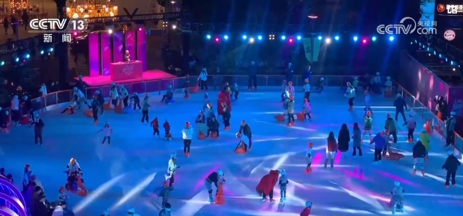 在北外灘商圈,這片占地1200平方米的露天冰場吸引了不少市民游客。人們滑冰、逛街、吃飯,還能觀看白玉蘭國際冰雪節(jié)的主題活動和演出。