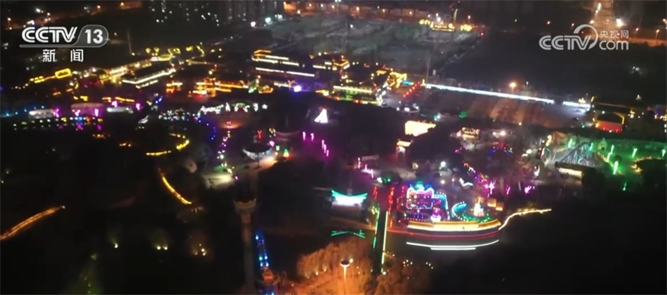在河南漯河,近兩萬盞造型各異的燈飾把城市裝扮得格外喜慶。夜幕降臨,道路兩側(cè)燈光璀璨,古風(fēng)建筑更顯得美輪美奐。此外,當?shù)剡€增加了水上國風(fēng)節(jié)目表演,迎接新年到來。
