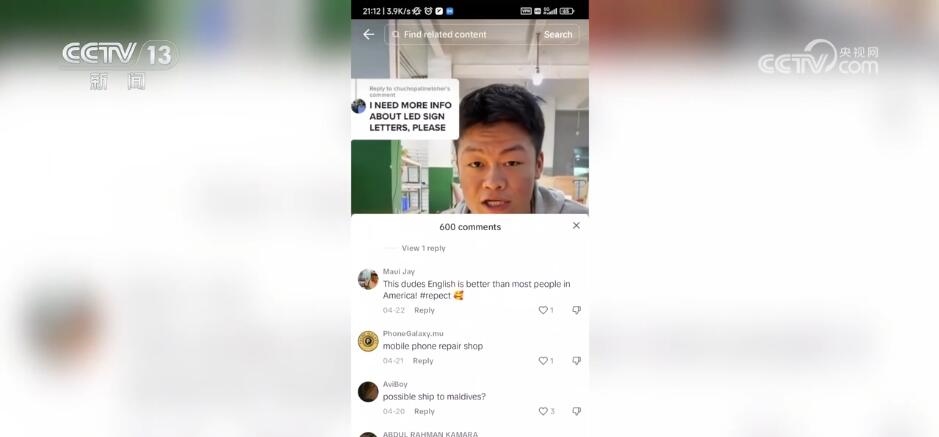 央視網(wǎng)消息:視頻里這個自稱“Tony”的小伙名叫竹宇,今年24歲。雖說講著一口地道、流利的英語,但卻打小是在廣東東莞長大的,沒有任何國外留學或生活的經(jīng)歷。他現(xiàn)在主要的工作,就是通過拍攝這些短視頻為廣州白云區(qū)一家生產(chǎn)燈牌的外貿(mào)企業(yè)招攬海外客戶,效果怎么樣?一起來看。