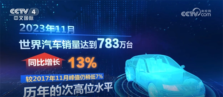 記者同時(shí)從全國(guó)乘用車市場(chǎng)信息聯(lián)席會(huì)了解到,2023年11月,世界汽車銷量達(dá)到783萬(wàn)臺(tái),同比增長(zhǎng)13%,較2017年11月峰值仍稍低7%,處歷年的次高位水平。其中,中國(guó)車企的銷量占世界份額38%,今年1—11月的累計(jì)份額達(dá)到33%。