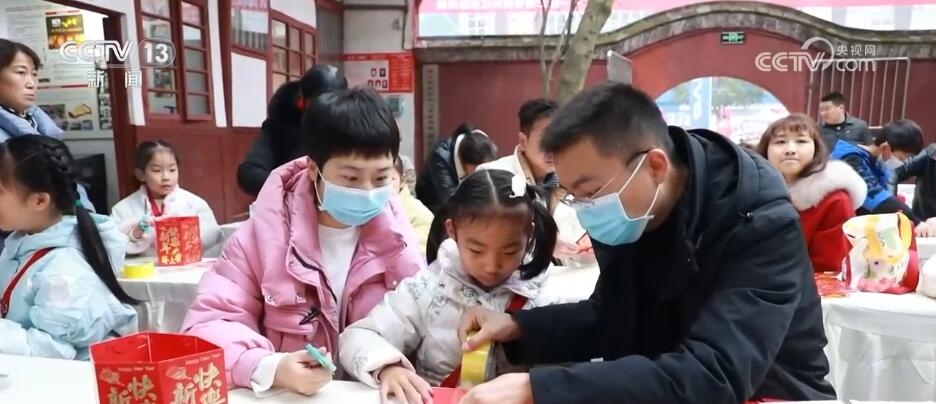在四川江安,大家走進博物館,體驗制作手工燈籠。在志愿者的指導下,家長和孩子們粘燈籠紙、拼插、貼紙花,不一會兒,一個個富有新年元素的手工燈籠展現在眼前。