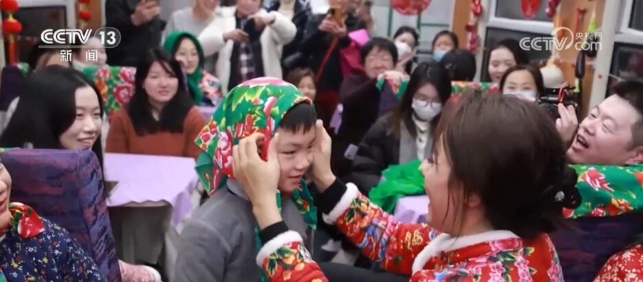 總臺(tái)央視記者 楊曜語:一上車,我就被濃濃的東北文化所感染到了,整個(gè)車廂都被東北大花的經(jīng)典配色裝飾著,再加上隨手就能品嘗到的特色美食,坐在床鋪上就感覺一秒鐘“穿越”到農(nóng)家炕頭。跟著游客,我現(xiàn)在到了一節(jié)互動(dòng)車廂,這里被布置成“跨年狂歡”的主題場景,在這里游客可以參與剪窗花、包餃子、穿東北大花襖一系列特色活動(dòng),現(xiàn)在就有很多游客在這里打卡拍照。