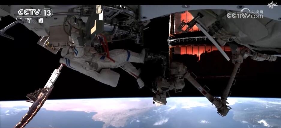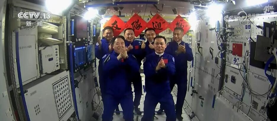 2023年10月26日19時(shí)34分,神舟十六號(hào)航天員乘組打開“家門”,歡迎神舟十七號(hào)航天員湯洪波、唐勝杰、江新林入駐“天宮”。兩個(gè)乘組在軌共同生活了約5天后,神舟十六號(hào)航天員在返回地球途中,還完成了此次飛行任務(wù)最后一項(xiàng)工作,首次拍攝了以地球?yàn)楸尘暗闹袊臻g站全景高清照片。