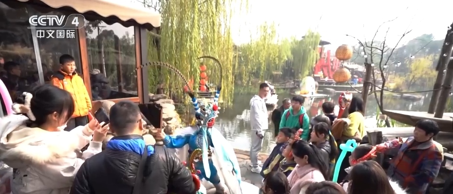 這個(gè)假期,體驗(yàn)國潮、非遺成了休閑旅游的新熱點(diǎn)。在山西大同,博物館以“龍”為主題,通過陶瓷器、青銅器等包含龍?jiān)氐恼蛊?,讓游客感受傳統(tǒng)文化的魅力。在江蘇蘇州,虎丘塔下的元旦游園會,集合了傳統(tǒng)手藝、非遺文創(chuàng)及特色小吃,吸引大批游人參與。在遼寧盤錦,人們聚在一起貼窗花、做糖畫、看表演,喜慶氛圍拉滿。湖南長沙的市民游客,近距離體驗(yàn)民間戲曲、粽編等十余項(xiàng)湖湘非遺項(xiàng)目,感受濃厚的新年氛圍。廣西玉林的百年老街“十字街”上,非物質(zhì)文化遺產(chǎn)、民俗、美食一起打造了一個(gè)沉浸式互動(dòng)體驗(yàn)市集。