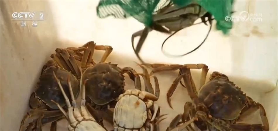 新鮮上市的大閘蟹被送往當?shù)馗鞔筠r貿市場和超市。因為價格相比之前降低不少,深受市民的喜愛。