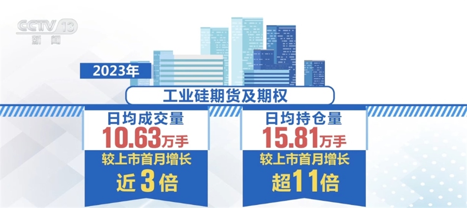 數(shù)據(jù)顯示,2023年,工業(yè)硅期貨及期權(quán)累計(jì)成交量2573.56萬(wàn)手,累計(jì)成交額15543.72萬(wàn)元,日均成交量10.63萬(wàn)手,較上市首月增長(zhǎng)近3倍;日均持倉(cāng)量15.81萬(wàn)手,較上市首月增長(zhǎng)超11倍。說(shuō)明了工業(yè)硅期貨及期權(quán)的市場(chǎng)流動(dòng)性、產(chǎn)業(yè)參與度顯著提升,逐步形成了公開(kāi)、透明、連續(xù)的工業(yè)硅價(jià)格信號(hào),指導(dǎo)企業(yè)合理安排經(jīng)營(yíng)計(jì)劃。