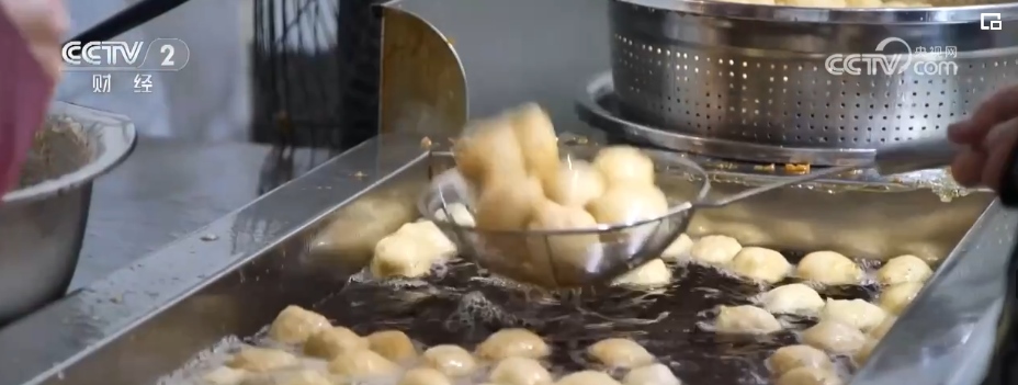 在鹽城市建湖縣的一家魚(yú)圓門(mén)店里,工人們正在炸制魚(yú)圓。分裝、稱(chēng)重、封口后,不一會(huì)兒工人們就把包裝好的魚(yú)圓擺滿了工作臺(tái)。