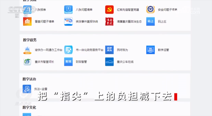 工作重心向基層服務(wù)轉(zhuǎn)變,才能切實看到為基層減負(fù)的實效。2021年,重慶市一體化、智能化、數(shù)字化政務(wù)工作平臺“渝快政”正式發(fā)布?!坝蹇煺痹谌蟹秶鷥?nèi)實現(xiàn)了上下層級、橫向跨部門之間的協(xié)同,一個“渝快政”App就可以支持過去40多項高頻次的政務(wù)辦公應(yīng)用,過去各部門App的相應(yīng)功能、各種工作群都整合在了“渝快政”一個App里面。一表通、“141”基層智治平臺也已經(jīng)接入了“渝快政”,正在向全市推廣。現(xiàn)在,文勇手機(jī)里的53個工作群已經(jīng)解散,郝歡手機(jī)里十幾個部門App也已經(jīng)被整合到“渝快政”。?