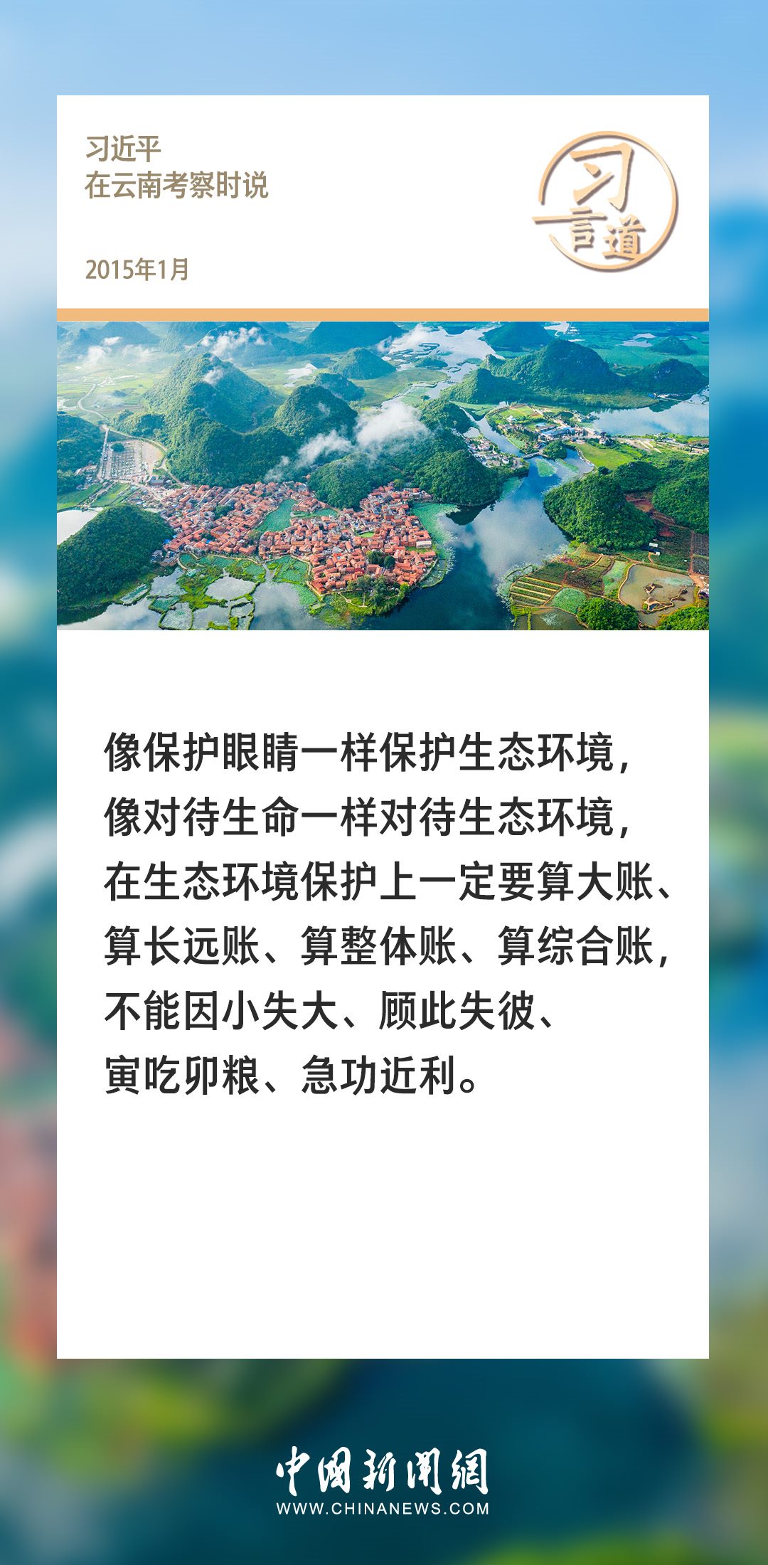 生態(tài)文明建設(shè)是關(guān)系中華民族永續(xù)發(fā)展的根本大計。黨的十八大以來,習(xí)近平總書記就生態(tài)文明建設(shè)發(fā)表過一系列重要論述,諸多“金句”深入人心。