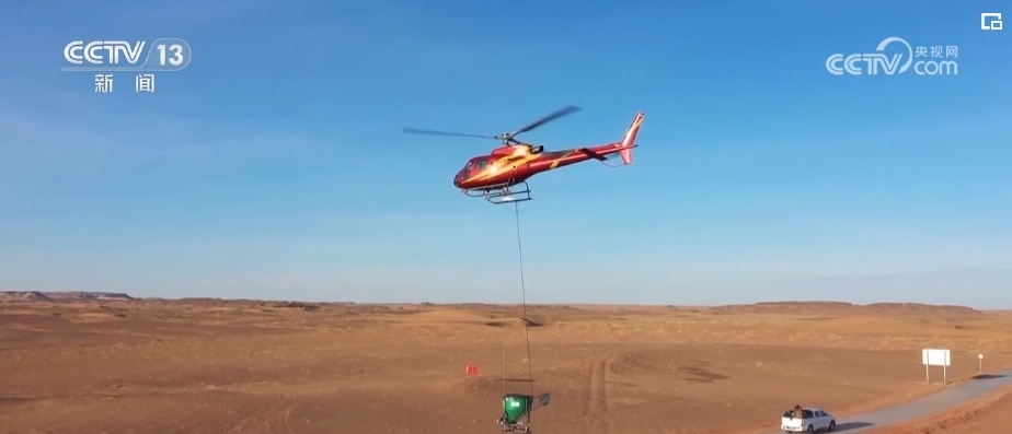 在內(nèi)蒙古烏拉特后旗瑪瑙湖的上空,每天都有兩架直升機(jī)輪番作業(yè),每天大概飛播20多噸種子。陰山北麓烏拉特后旗2023年度生態(tài)綜合治理項(xiàng)目是三北工程的一部分,在2023年7月開(kāi)始施工,計(jì)劃在2024年2月底完成生態(tài)修復(fù)治理面積約為77.44萬(wàn)畝。
