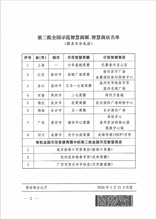 央視網消息:據商務部網站消息,商務部發(fā)布關于公布第二批全國示范智慧商圈、智慧商店名單的通知,認定8個商圈、15個商店為第二批“全國示范智慧商圈”、“全國示范智慧商店”。