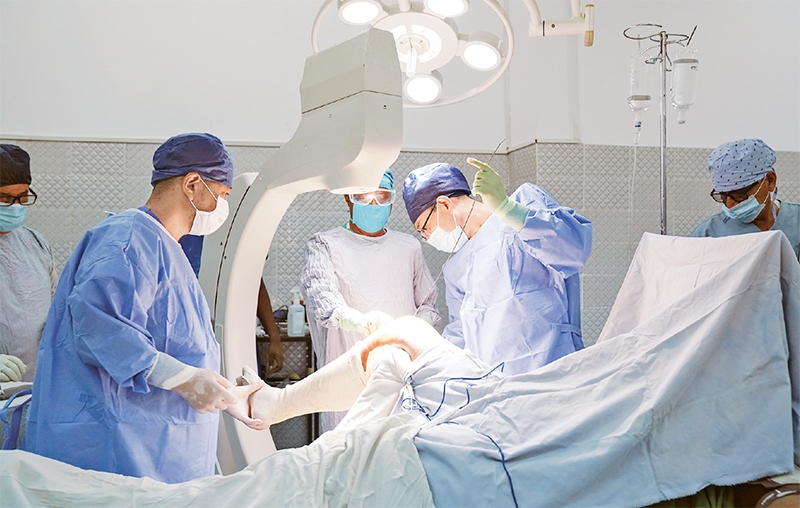 圖為2023年3月1日,中國(guó)第21批援吉布提醫(yī)療隊(duì)隊(duì)員在吉布提首都吉布提市貝爾蒂耶醫(yī)院為當(dāng)?shù)鼗颊咦鍪中g(shù)。中國(guó)第21批援吉布提醫(yī)療隊(duì)于2022年1月抵達(dá)吉布提開展為期15個(gè)月的援外醫(yī)療任務(wù)。 新華社記者 韓旭/攝
