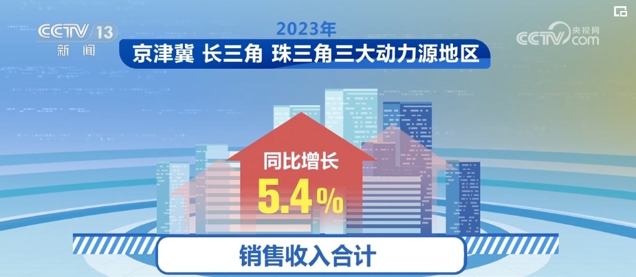 2023年,京津冀、長三角、珠三角三大動(dòng)力源地區(qū)經(jīng)濟(jì)總體呈現(xiàn)較快發(fā)展態(tài)勢(shì),銷售收入合計(jì)同比增長5.4%,占全國比重提高至54.1%,較2022年提高0.3個(gè)百分點(diǎn),帶動(dòng)作用持續(xù)增強(qiáng)。