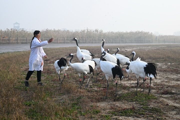 冬日清晨,遼闊的黃海濕地被成群丹頂鶴的高亢鳴叫喚醒。這里是“東亞-澳大利西亞”遷飛通道上數(shù)百萬(wàn)候鳥(niǎo)的“加油站”,每年有約400至600只野生丹頂鶴在此越冬。不久前美國(guó)加州州長(zhǎng)紐森到訪時(shí),一只陪同“參觀”的丹頂鶴意外走紅,以優(yōu)雅姿態(tài)為美麗江蘇代言。