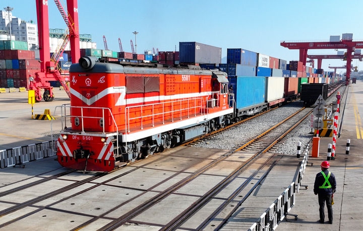 水路大進(jìn)大出,鐵路風(fēng)馳電掣。元旦當(dāng)天,連云港新年開(kāi)行的首趟中歐班列載著汽車配件、家用電器等,從中哈物流合作基地出發(fā),駛往中亞國(guó)家;同日,南通海安物流基地內(nèi),一列滿載貨物的班列鳴笛啟程開(kāi)往越南河內(nèi)。有去有回,不久之后,“鋼鐵駝隊(duì)”會(huì)把來(lái)自歐洲、中亞和東南亞的機(jī)械、木材等運(yùn)回中國(guó),開(kāi)啟新一輪國(guó)際循環(huán)。