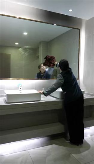 王柳云的保潔面積很大,整個寫字樓的十五層和十七層,地板、桌椅、窗戶、衛(wèi)生間,都是她的職責(zé)范圍。“很多人一開完會,杯子、椅子、桌子要清理,還有窗子全部要擦干凈”,她形容自己的工作量“三四個人都干不完”,但她看中了這份工作留給她的一隅,隨便找個角落就可以寫字畫畫。