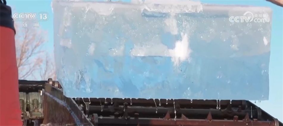 看冰燈、玩超長冰滑梯、和萬人在冰天雪地?zé)嵛?,眼下的哈爾濱冰雪大世界堪稱歡樂的海洋。此時(shí),同樣熱鬧的還有松花江的冰面上,機(jī)器轟鳴、冰花飛濺,一塊塊晶瑩剔透的冰被拖出水面,裝車送往存冰場。