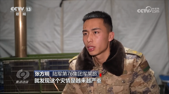 張方明:“一直走到大河家鎮(zhèn),發(fā)現(xiàn)災(zāi)情越來越嚴(yán)重,就打電話說我回來了,我爸第一時間跟我說:‘你先不要回去了,這邊搬物資啥的,鄉(xiāng)政府都比較忙,你是當(dāng)兵的,你要來這邊幫忙,你要肩負(fù)起這份責(zé)任。’”