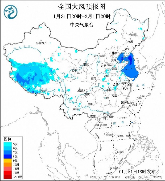 中央氣象臺(tái)1月31日18時(shí)發(fā)布大風(fēng)藍(lán)色預(yù)警:預(yù)計(jì),1月31日20時(shí)至2月1日20時(shí),渤海、渤海海峽、黃海大部海域?qū)⒂?~8級(jí)、陣風(fēng)9~10級(jí)的偏北到東北風(fēng)。