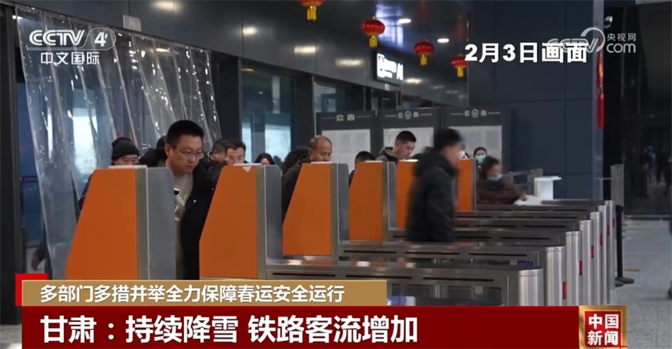 總臺(tái)記者 張磊:我現(xiàn)在所在的位置是蘭州火車站,現(xiàn)在,蘭州的降雪天氣仍在持續(xù)。受降雪影響,蘭州客運(yùn)中心的42條線路、136輛班線客車目前均已停發(fā),客流涌向鐵路,在2月2日,蘭州鐵路局發(fā)送人數(shù)就超過了24萬(wàn)人,同比增加3萬(wàn)多人。針對(duì)這種情況,蘭州鐵路局優(yōu)化列車開行方案,增加運(yùn)力投放,以滿足旅客的乘車需求。