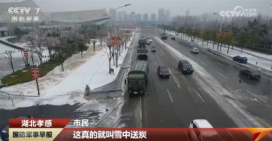 央視網(wǎng)消息:受連日強冷空氣影響,中部地區(qū)出現(xiàn)大范圍寒潮,湖北省孝感市因雨雪天氣,導(dǎo)致道路結(jié)冰濕滑,城市道路交通嚴重受阻。武警孝感支隊緊急出動80多名官兵,支援地方破冰除雪,為受困車輛提供幫助,確保城市重點路段和主干道暢通。