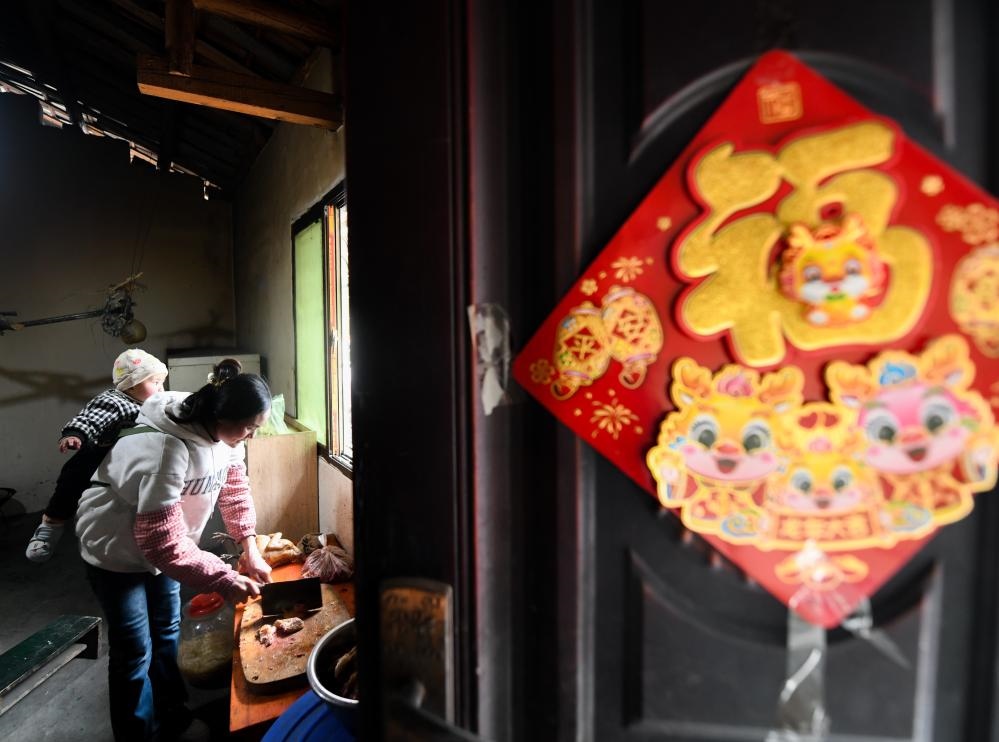 2月3日,在越西縣中所鎮(zhèn)陶家營(yíng)村,游客到羅國(guó)芹家開(kāi)的農(nóng)家樂(lè)用餐。新華社記者 周科 攝