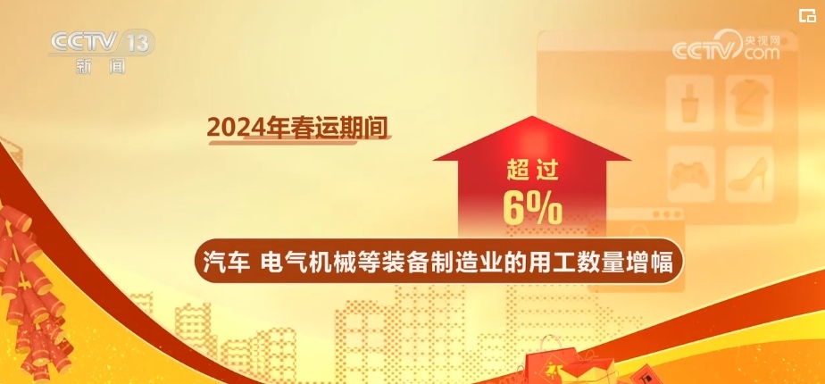 與前兩年的數(shù)據(jù)相比,也有不少人選擇春節(jié)不回家,堅(jiān)守崗位投入到工作當(dāng)中。北京大學(xué)與中國聯(lián)通智慧足跡的聯(lián)合團(tuán)隊(duì)在對(duì)近幾年春節(jié)前后的手機(jī)信令數(shù)據(jù)進(jìn)行建模分析后,發(fā)現(xiàn)2024年春運(yùn)期間,全國2000多個(gè)重點(diǎn)產(chǎn)業(yè)園區(qū)的用工數(shù)量將比2023年同期增長5.8%。