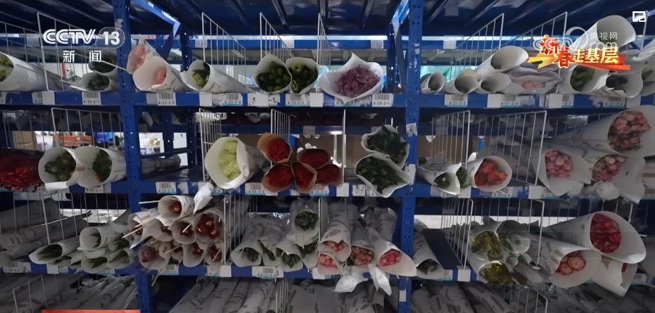 春節(jié)期間五彩繽紛、種類繁多的年宵花成為主角,玫瑰、臘梅、郁金香都是市場“寵兒”。這幾天,周琦他們的日訂單量已經(jīng)從2500單增加到3000多單。
