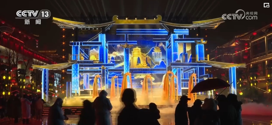 除夕當(dāng)晚9時(shí),西安分會(huì)場(chǎng)《山河詩(shī)長(zhǎng)安》篇章的“打開(kāi)方式”讓人眼前一亮。在科技助力下,“詩(shī)仙”李白跨越歲月長(zhǎng)河“穿越”而來(lái),在煙火璀璨中,隨著熙熙攘攘的人群一起走進(jìn)西安城墻永寧門(mén),走入千年后的耀眼長(zhǎng)安。