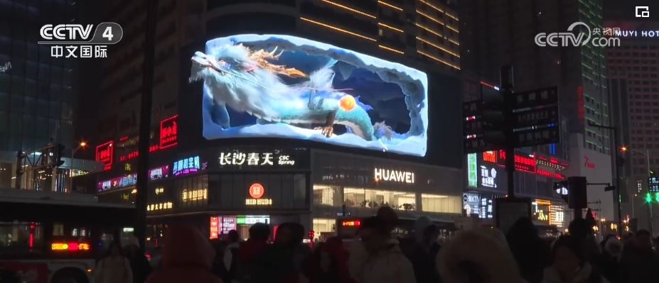 隨著夜幕降臨,在上海市南京西路這家商場戶外大屏,在裸眼3D技術(shù)的加持下,一條靈動時尚的“光影巨龍”騰飛而出。同時,上海南京西路商圈的多個地標(biāo)建筑,也開啟了春節(jié)燈光演繹。